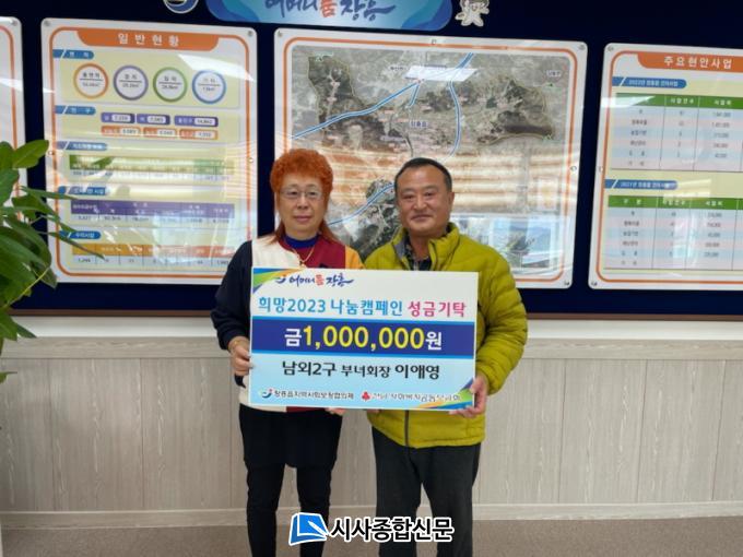 | ÀåÈï Àֿ̾µ ³²¿Ü2±¸ ºÎ³àȸÀå, ¼º±Ý 100¸¸¿ø ±âŹ »ç¶ûÀÇ ¼º±Ý ±âŹÀ¸·Î ÈÆÈÆÇÑ ÀÌ¿ô»ç¶û ÀüÇØ |