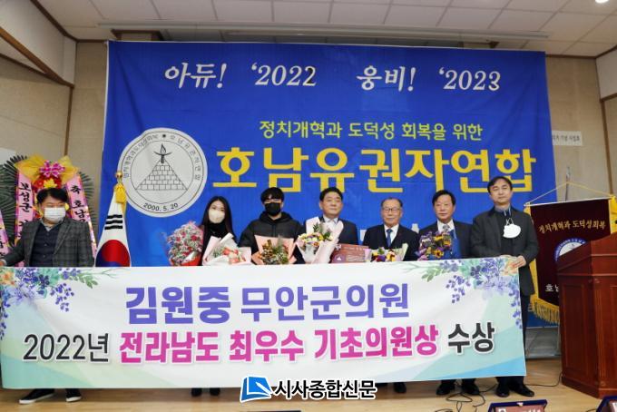 [½Ã»çÁ¾ÇսŹ® = ¿À½ÂÅà ±âÀÚ] ¹«¾È±ºÀÇȸ ±è¿øÁß ÀÇ¿øÀÌ Áö³ 6ÀÏ ±¤ÁÖ±¤¿ª½Ã 4․19Çõ¸í ±â³ä°ü¿¡¼ ¿¸° 2022³â È£³²À¯±ÇÀÚ¿¬ÇÕ ¼Û³âȸ ¹× ½Ã»ó½Ä¿¡¼ Àü¶ó³²µµ¡®ÃÖ¿ì¼ö ±âÃÊÀÇ¿ø»ó¡¯À» ¼ö»óÇß´Ù.