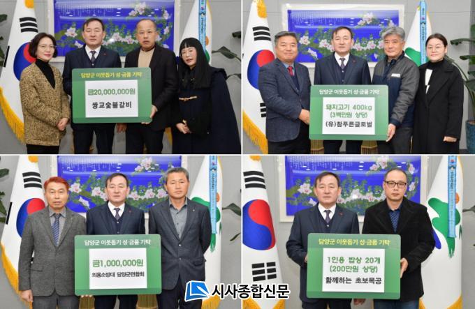 13ÀÏ¿¡´Â ½Ö±³½¡ºÒ°¥ºñ(´ëÇ¥ ±èâȸ) Çö±Ý 2,000¸¸¿ø, ³ó¾÷ȸ»ç¹ýÀÎ (À¯)ÂüǪ¸¥±Û·Î¹ú(´ëÇ¥ ¼Û¼®Âù) 300¸¸¿ø »ó´ç µÅÁö°í±â 400kg, ÇÔ²²ÇÏ´Â Ãʺ¸¸ñ°ø ¹êµå(Àü³²±¤ÁÖÁöºÎÀå Á¤Ã¢¿ì) 1ÀÎ¿ë ¹ä»ó 20°³(200¸¸¿ø »ó´ç) ÀÇ¿ë¼Ò¹æ´ë ´ã¾ç±º¿¬ÇÕȸ(¿¬ÇÕȸÀå ¹èµ¿°ü) Çö±Ý 100¸¸¿ø µî ¸¹Àº °÷¿¡¼ µû¶æÇÑ ¸¶À½À» ÀüÇß´Ù.