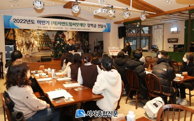 À̳¯ ÀåÇÐ±Ý Àü´Þ½Ä¿¡´Â (Àç)ÀÚ¿¬µå¸²¾¾¾ÑÀç´Ü(ÀÌ»çÀå ÀÌÈñÇÑ, ÀÌÇÏ ¾¾¾ÑÀç´Ü) ÁÖÃÖ·Î ±è¼øÈ£ ±º¼ö¿Í ¾¾¾ÑÀç´Ü °ü°èÀÚ, ÀåÇлý µî 20¸íÀÌ Âü¼®ÇÑ °¡¿îµ¥ ±¸·ÊÀÚ¿¬µå¸²ÆÄÅ© ºñ¾î¶ô ÇϿ콺¿¡¼ °³ÃÖÇÏ¿´´Ù.