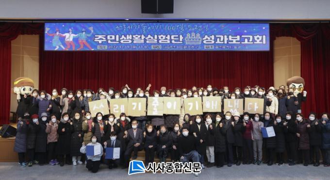 µ¿±¸´Â Áö³ 19ÀÏ ¡®¾²·¹±âÁÙÀ̱â 100ÀÏ µµÀü! »ýȰ½ÇÇè´Ü¡¯ ¼º°úº¸°íȸ¸¦ ¿°í, Áö³ 3°³¿ù(8~11¿ù)°£ÀÇ ¼º°ú¸¦ °øÀ¯ÇÏ´Â ½Ã°£À» °¡Á³´Ù. À̳¯ º¸°íȸ¿¡¼ »ýȰ½ÇÇè´Ü ´ë»ó ¼ö±â °ø¸ðÀü¿¡¼ ¿ì¼ö»óÀ» ¹ÞÀº ÁÖ¹ÎÀÌ Á÷Á¢ ¼ö±â¸¦ ³¶µ¶Çϰí, ¾²·¹±â ÁÙÀÌ´Â ³ëÇÏ¿ì µîÀ» °øÀ¯ÇÏ´Â ÅäÅ© ÄܼƮ¸¦ ÁøÇàÇß´Ù.