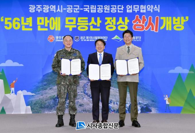 °±âÁ¤ ±¤ÁÖ½ÃÀåÀº ¡°1966³â 12¿ù20ÀÏ ¹«µî»ê Á¤»ó¿¡¼ ±º»ç¾÷¹«¸¦ °³½ÃÇÑÁö 56³âÀÌ µÇ´Â ¿À´Ã ¹«µî»ê Á¤»ó »ó½Ã°³¹æ Çù¾àÀ» ¸Î°Ô µÅ ¹«Ã´ ¶æ±í´Ù¡±¸ç ¡°±â¼ú°ú ¾Èº¸ ü°è µî ½Ã´ëÀû »óȲÀÌ º¯ÇÔ¿¡ µû¶ó ¹«µî»ê±¹¸³°ø¿ø ÁöÁ¤ 10ÁÖ³âÀ» ¸ÂÀÌÇÏ´Â ³»³âÀÌ µÇ¸é ¿ÂÀüÈ÷ ¹«µî»ê Á¤»óÀ» ½Ã¹Îµé ǰÀ¸·Î µ¹·Áµå¸± ¼ö ÀÖ´Ù¡±°í ¸»Çß´Ù.
