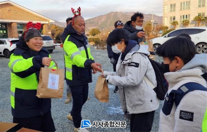 3³â° ¼ºÅºÀý ¼±¹°À» Àü´ÞÇØ¿À°í ÀÖ´Â ¿ë»ê¸é ³²³à ÀÚÀ²¹æ¹ü´ë°¡ ¿ÃÇØ´Â ¿ë»êÀ¯Ä¡¿ø, ÃʵîÇб³, ÁßÇб³ Çлý ¹× ±³Á÷¿ø 120¸íÀ» ´ë»óÀ¸·Î 100¸¸¿ø »ó´çÀÇ ÇÖÆÑ, °úÀÚ, À½·á µîÀ» Àü´ÞÇß´Ù.