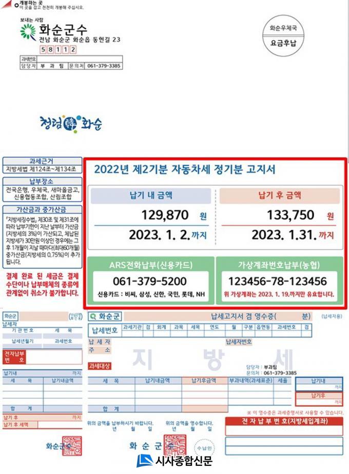 ȼø±ºÀº 12¿ù Á¤±âºÐ ÀÚµ¿Â÷¼¼ °íÁö¼¸¦ ½ÃÀÛÀ¸·Î ³»³â 1¿ù¿¡ ºÎ°úµÇ´Â ÀÚµ¿Â÷¼¼ ¿¬³³, µî·Ï¸éÇã¼¼(¸éÇã), Áֹμ¼(°³ÀκÐ) µî ´Ù¸¥ ¼¼¸ñ¿¡µµ Å« ±Û¾¾ ³³¼¼ °íÁö¼¸¦ ¹ß¼ÛÇÒ ¹æÄ§ÀÌ´Ù.