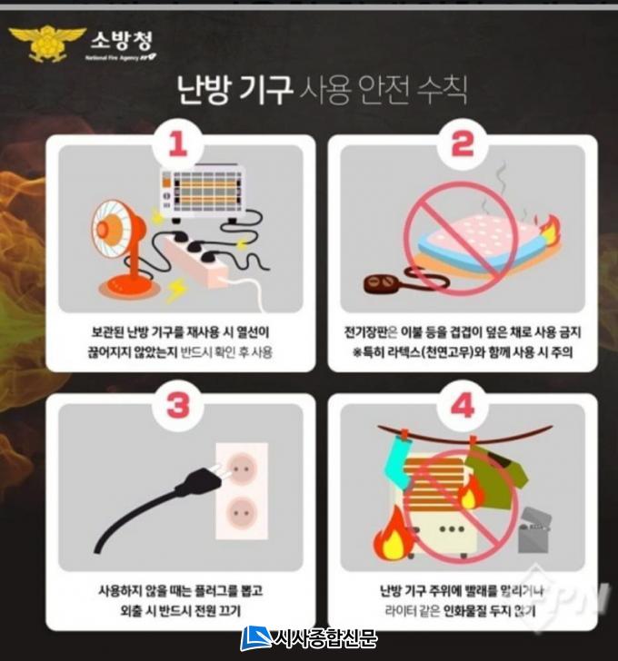 °Ü¿ïöÀº °©ÀÛ½º·± ±â¿Â ±Þ°ÇÏ µî Ãß¿î ³¯¾¾·Î ÀÎÇØ »ç¶÷µéÀÇ ¿ÜºÎȰµ¿ÀÌ °¨¼ÒÇϰí, ½Ç³»¿¡¼ Ȱµ¿ÇÏ´Â µ¿¾È Àü±âÀåÆÇ°ú È÷ÅÍ µî Àü±â ³¹æ¿ëǰÀÇ »ç¿ëÀÌ ¸¹¾ÆÁö¸é¼ ÈÀç ¹ß»ý ¿ª½Ã Áõ°¡Çϱ⠶§¹®¿¡ ³¹æ±â±¸ »ç¿ë ½Ã ¾ÈÀü¼öÄ¢ ¼÷Áö°¡ ¹«¾ùº¸´Ù Áß¿äÇÏ´Ù.
