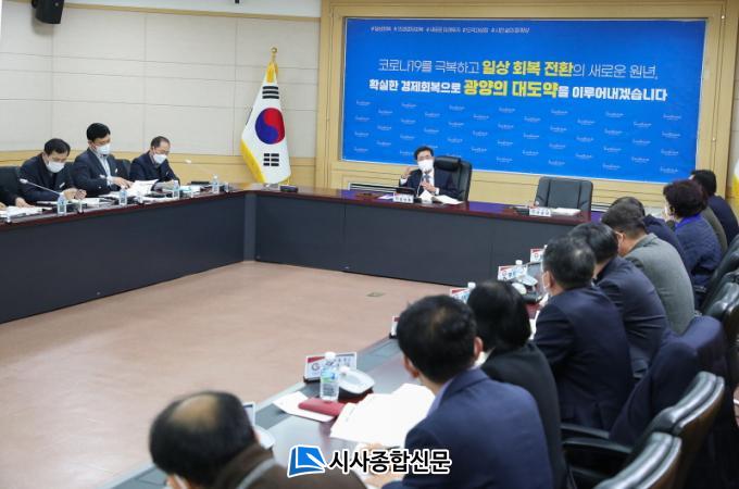 [½Ã»çÁ¾ÇսŹ® = Àå¹Î±Ô ±âÀÚ] ±¤¾ç½Ã´Â Áö³ 29ÀÏ ½Ãû »óȲ½Ç¿¡¼ Á¤ÀÎÈ ±¤¾ç½ÃÀå ÁÖÀç·Î ±¹¡¤¼ÒÀå°ú 12°³ À¾¡¤¸é¡¤µ¿ÀåÀÌ Âü¼®ÇÑ °¡¿îµ¥ ½ÃÁ¤ ÁÖ¿ä Çö¾ÈÀ» °øÀ¯ÇÏ°í ¼ÒÅëÀ» °ÈÇÏ´Â ½Ã°£À» °¡Á³´Ù.