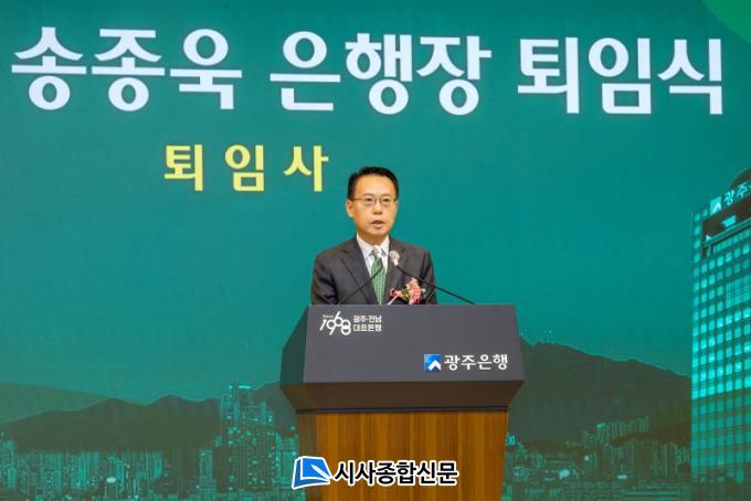 ¼ÛÁ¾¿í ±¤ÁÖÀºÇàÀåÀº ÅðÀӽĿ¡¼ ¡°Ã¹ Á÷ÀåÀÎ ±¤ÁÖÀºÇà¿¡ Çà¿øÀ¸·Î ÀÔÇàÇØ ±¤ÁÖÀºÇà ÃÖÃÊ ÀÚÇàÃâ½Å ÀºÇàÀåÀ» Áö³»±â±îÁö ±¤ÁÖÀºÇà°ú ÇÔ²²ÇÑ 30¿©³âÀÇ »îÀº Àλý¿¡¼ ¹«¾ù°úµµ ¹Ù²Ü ¼ö ¾ø´Â °ªÁø ½Ã°£À̾ú´Ù¡±°í ¿îÀ» ¶¼¸ç, ¹Ï°í µû¶ó¿ÍÁØ Á÷¿øµé°ú ±¤ÁÖÀºÇà¿¡ º¯ÇÔ¾ø´Â ½Å·Ú¿Í ¼º¿øÀ» º¸³»ÁֽŠÁö¿ª¹Î ¹× °í°´¿¡°Ô °¨»çÀÇ ¸¶À½À» ÀüÇß´Ù.