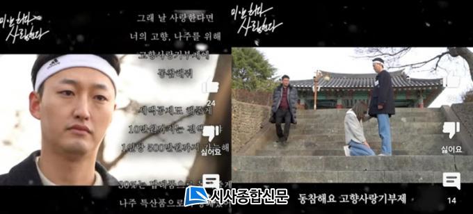 ³ªÁֽà À¯Æ©ºê ä³Î¿¡´Â µå¶ó¸¶ ¡®¹Ì¾ÈÇÏ´Ù »ç¶ûÇÑ´Ù¡¯¿¡¼ ³²¡¤¿© ÁÖÀΰøÀÌ »ç¶ûÀ» °í¹éÇÏ´Â ¸íÀå¸éÀ» °íÇâ»ç¶û±âºÎÁ¦ ÃëÁö¿¡ ¸ÂÃç ½Ãû °ø¹«¿øµéÀÌ ÀçÄ¡ ÀÖ°Ô ÆÐ·¯µðÇÑ ¿µ»óÀÌ ±¸µ¶ÀÚµéÀÇ Å« È£ÀÀÀ» ¾ò°í ÀÖ´Ù.