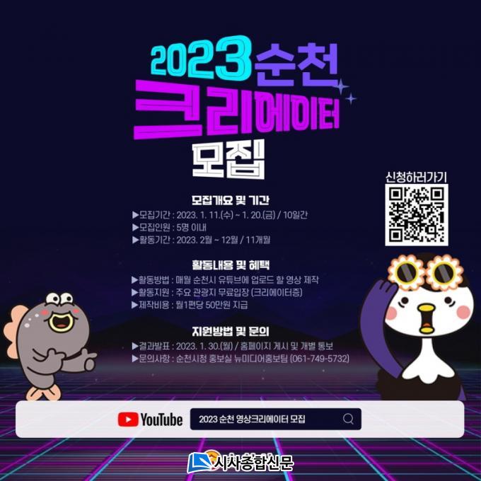| ¼øÃµ½Ã, 2023³â ¿µ»óÅ©¸®¿¡ÀÌÅÍ¿Í ¼Ò¼È¹Ìµð¾î ±âÀÚ´Ü ¸ðÁý |