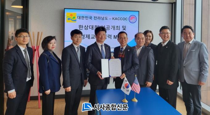[½Ã»çÁ¾ÇսŹ® = ¿À½ÂÅà ±âÀÚ] Àü¶ó³²µµ´Â ¹Ì±¹ ¿À·»ÁöÄ«¿îƼ ÇÑÀλó°øÈ¸ÀǼÒ(KACCOC)¿Í ¡®Á¦21Â÷ ¼¼°èÇÑ»ó´ëȸ¡¯ ¼º°ø °³ÃÖ Áö¿øÀ» ºñ·ÔÇØ µÎ Áö¿ª ºñÁî´Ï½º Çù·Â ¹× °æÁ¦±³·ù¸¦ À§ÇØ Áö³ 9ÀÏ ·Î½º¾ØÁ©·¹½º¿¡¼ ¾÷¹«Çù¾àÀ» Çß´Ù°í ¹àÇû´Ù.