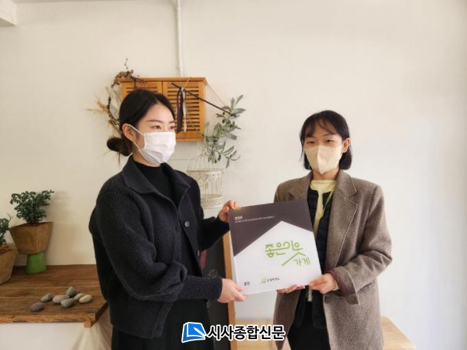 [½Ã»çÁ¾ÇսŹ® = ¿À½ÂÅà ±âÀÚ] ±Â³×À̹ö½º ±¤ÁÖ¼ºÎÁöºÎ(ÁöºÎÀå ¹èÁØ¿)´Â ±¤ÁÖ±¤¿ª½Ã ¼±¸¿¡ À§Ä¡ÇÑ ²ÉÁ¤(´ëÇ¥ ±èÁ¤¾Æ)°ú ÇÔ²² ÁÁÀºÀÌ¿ô°¡°Ô ÇöÆÇ Àü´Þ½ÄÀ» ÁøÇàÇß´Ù°í 13ÀÏ(±Ý), ¹àÇû´Ù. ²ÉÁ¤Àº ÁÁÀºÀÌ¿ô°¡°Ô Ä·ÆäÀο¡ Âü¿©ÇÏ¿© ±â¾÷ ¼öÀͱÝÀÇ ÀϺθ¦ ±¹³»¾Æµ¿±Ç¸®º¸È£»ç¾÷¿¡ ÈÄ¿øÇÑ´Ù.