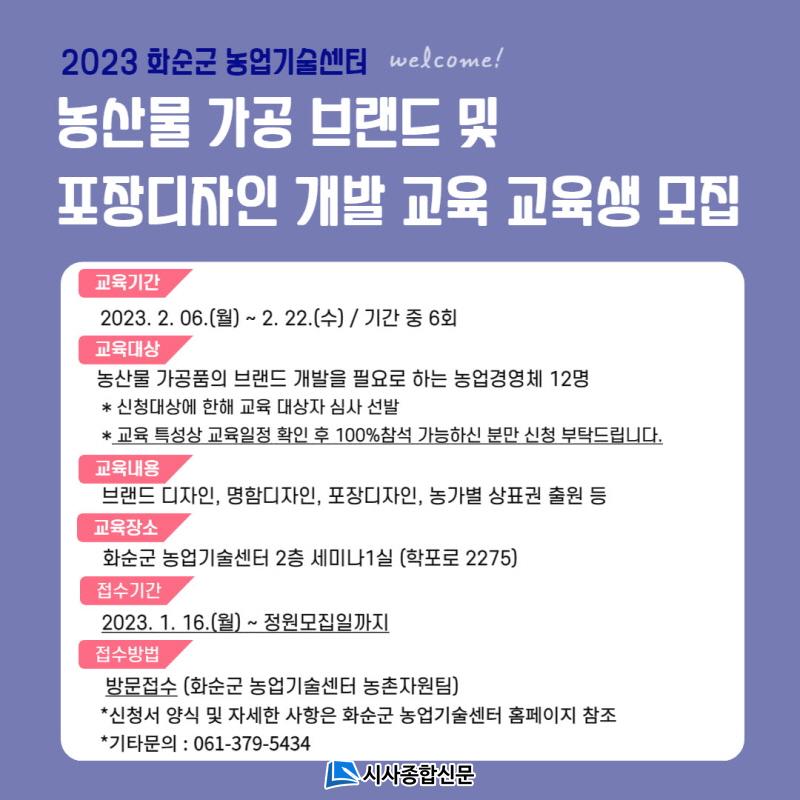 ¸ðÁý ´ë»óÀº °¡°øÁ¦Ç°ÀÌ ÀÖÀ¸¸é¼ Ưº°ÇÑ Æ÷ÀåµðÀÚÀÎÀÌ ÀÖ¾î¾ß ÇÏ´Â ³ó¾÷°æ¿µÃ¼(¿¹ºñ°¡´É)³ª ¹ýÀÎÀ¸·Î, ±³À° ±â°£Àº 2¿ù 6ÀÏ °³°ÇÏ¿© 2¿ù 22ÀϱîÁö ÃÑ 6ȸ, ±³À°ºñ¿Í Àç·áºñ ¸ðµÎ ¹«·á·Î ÁøÇàµÈ´Ù.