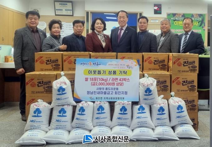 ÇÑ¿ëÇö ÀÌ»çÀåÀº ¡°»ç¶ûÀÇ Á»µµ¸® ¿îµ¿À» ÅëÇØ ¸ðÀº Á¤¼ºÀÌ ÁÖº¯ ¾î·Á¿î ÀÌ¿ôµé¿¡°Ô µµ¿òÀÌ µÇ±â¸¦ ¹Ù¶ó¸ç, ¿ì¸® ÀÌ¿ô¿¡°Ô µû¶æÇÑ ¿Â±â¸¦ ÀüÇØ Èñ¸ÁÀ¸·Î °Åµì³ªµµ·Ï ÇÔ²²ÇÏ´Â »õ¸¶À»±Ý°í(ȸÁøÁöÁ¡)°¡ µÇµµ·Ï Èû¾²°Ú´Ù.¡±°í ÀüÇß´Ù.