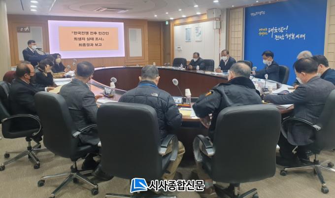 Àü³²µµ´Â 19ÀÏ µµÃ» Á¤¾à¿ë½Ç¿¡¼ Çѱ¹ÀüÀï ÀüÈÄ Èñ»ýÀÚÀÇ Á¤È®ÇÑ ÇÇÇØÁ¶»ç¿Í ü°èÀû ÀÚ·á ±¸ÃàÀ» À§ÇÑ ¡®Çѱ¹ÀüÀï ÀüÈÄ ¹Î°£ÀÎ Èñ»ýÀÚ ½ÇÅÂÁ¶»ç¡¯ ¿¬±¸¿ë¿ª ÃÖÁ¾º¸°íȸ¸¦ °³ÃÖÇß´Ù.