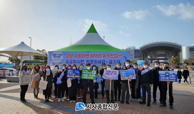 [½Ã»çÁ¾ÇսŹ® = ¿À½ÂÅà ±âÀÚ] ¿©¼ö½Ã(½ÃÀå Á¤±â¸í)°¡ 20ÀÏ ¿©¼ö¿¢½ºÆ÷¿ª¿¡¼ ¼³ ¸íÀýÀ» ¸Â¾Æ °íÇâÀ» ¹æ¹®ÇÏ´Â ±Í¼º°´¿¡°Ô ¡®°íÇâ»ç¶û±âºÎÁ¦¡¯ È«º¸¿¡ ³ª¼¹´Ù.