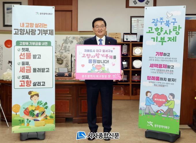 ±¤ÁÖ ºÏ±¸(±¸Ã»Àå ¹®ÀÎ)´Â ¹®ÀÎ ºÏ±¸Ã»ÀåÀÌ ÀڸŰῬ µµ½ÃÀÎ ´ë±¸ ´Þ¼±¸¿¡ °íÇâ»ç¶û±âºÎ±Ý 100¸¸¿øÀ» ±âŹÇß´Ù°í 24ÀÏ ¹àÇû´Ù. À̹ø ±âŹ¿¡ ´ëÇØ ºÏ±¸´Â Àü±¹ÀûÀ¸·Î ½ÃÇàµÇ°í ÀÖ´Â °íÇâ»ç¶û±âºÎÁ¦ÀÇ È°¼ºÈ¿Í ÁֹεéÀÇ µ¿Âü ºÐÀ§±â È®»êÀ» À§ÇÑ ¹® ûÀåÀÇ ÀÇÁö¶ó°í ¼³¸íÇß´Ù.