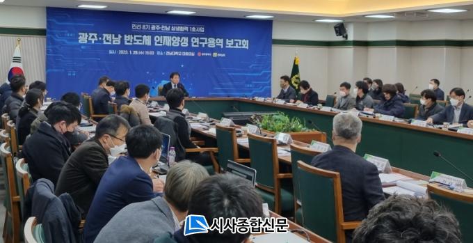 À̳¯ º¸°íȸ¿¡´Â Á¤¼ºÅÃ(Àü³²´ë ÃÑÀå) ±¤ÁÖ․Àü³² ¹ÝµµÃ¼ ÀÎÀç¾ç¼ºÀ§¿øÀå, ±¤ÁÖ½Ã, Àü³²µµ, ±¤Áֽñ³À°Ã», Àü³²µµ±³À°Ã»°ú ±¤ÁÖ´ë․³²ºÎ´ë․µ¿½Å´ë․¸ñÆ÷´ë․¼øÃµ´ë․Á¶¼±´ë․È£³²´ë․±¤ÁÖ°ú±â¿ø․Çѱ¹¿¡³ÊÁö°ø´ë‧Á¶¼±À̰ø´ë․±¤ÁÖÆú¸®ÅØ´ë µî °¢±Þ ±³À°±â°üÀÌ Âü¼®ÇØ ¹ÝµµÃ¼¾÷°è¿¡ ÇÊ¿äÇÑ ÀηÂÀÇ Àû±â °ø±Þ ¹æ¾ÈÀ» ³íÀÇÇß´Ù.