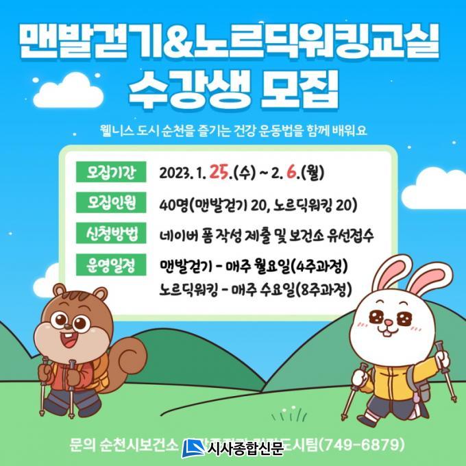 ¼øÃµ½Ã¹Î ´©±¸³ª Âü¿©ÇÒ ¼ö ÀÖÀ¸¸ç ¼ö°»ý 40¸íÀ» ¼±Âø¼øÀ¸·Î ´ÙÀ½ ´Þ 6ÀϱîÁö ¸ðÁýÇÑ´Ù. ¸Ç¹ß °È±â¿Í ³ë¸£µñ¿öÅ· °úÁ¤ °¢ 20¸í¾¿À¸·Î ¼ö° ½ÅûÀº ³×À̹ö Æû ¶Ç´Â º¸°Ç¼Ò °Ç°ÁõÁø°ú °Ç°µµ½ÃÆÀ(061-749-6879)À¸·Î ÇÏ¸é µÈ´Ù.