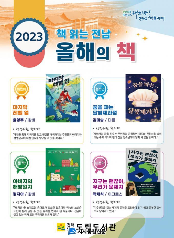 À̹ø¿¡ ¼±Á¤ÇÑ ¿ÃÇØÀÇ Ã¥À» ÅëÇØ ¡®ÀÛ°¡¿ÍÀÇ ¸¸³²¡¯ µî µ¶¼¹®È ÇÁ·Î±×·¥°ú ¿¬°èÇØ ¡®µµ¹Î Ã¥ Àб⠿¡¯À» ÆîÄ¡°í, ÇϹݱ⿣ ¡®µ¶¼¿Õ ¼±¹ß´ëȸ¡¯µµ °³ÃÖÇÒ °èȹÀÌ´Ù. ¿ÃÇØÀÇ Ã¥ ¼±Á¤Àº Áö¿ª ÀÛ°¡¿Í ±³¼ö, »ç¼±³»ç µîÀ¸·Î ±¸¼ºÇÑ µµ¼¼±Á¤À§¿øÈ¸ ½É»ç¿Í ¿Â¶óÀÎ µµ¹ÎÅõÇ¥ °á°ú¸¦ ¹Ý¿µÇß´Ù. ¹®ÇÐ, ºñ¹®ÇÐ, û¼Ò³â, ¾î¸°ÀÌ, 4°³ ºÐ¾ß·Î ³ª´² °¢ 1±Ç¾¿ ¼±Á¤Çß´Ù.