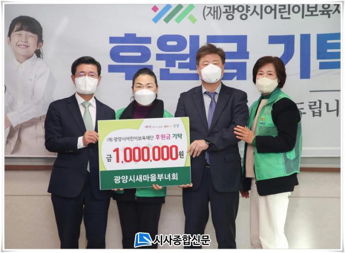 Ȳȣ¼ø ±¤¾ç½Ã»õ¸¶À»ºÎ³àȸ ȸÀåÀº ¡°ÇÑ ÇØ µ¿¾È »õ¸¶À» °¡Á·µé°ú ¶¡ Èê·Á Á¤¼º½º·´°Ô ³óÀÛ¹°À» °¡²Ù¾ú´Ù¡±¸ç, ¡°¾ÆÀ̵éÀÌ ÇູÇÏ°í °Ç°ÇÏ°Ô ÀÚ¶ó ±¤¾ç½ÃÀÇ °¡Ä¡¸¦ ³ô¿©ÁÖ±æ ¹Ù¶ó´Â ¸¶À½À¸·Î ȸ¿øµé°ú ¶æÀ» ¸ð¾Æ ÈÄ¿ø±ÝÀ» Àü´ÞÇÏ°Ô µÆ´Ù¡±°í ¸»Çß´Ù.