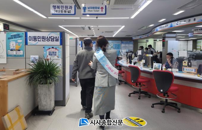 °Åµ¿ ºÒÆíÇϰųª ³ë¾àÀÚ°¡ ¹æ¹®ÇÒ °æ¿ì¿¡´Â Á÷¿øÀÌ Ã¢±¸±îÁö Á÷Á¢ µ¿Çà ¾È³»ÇØ ´ã´çÀÚ¿Í ¿¬°èÇÑ´Ù. ¹Î¿ø ⱸ¿¡¼´Â ´ë±â½Ã°£ ÁÙÀÌ°í ½Å¼ÓÇÑ ¹Î¿ø ¼ºñ½º Á¦°øÀ» À§ÇØ ¹Î¿ø ¼½Ä ÀÛ¼º¿¹½Ã QRÄÚµå(Ãâ»ý½Å°í¼ µî 10Á¾)¸¦ ºñÄ¡Çß´Ù. ÄèÀûÇÏ°í ¿©À¯·Î¿î ºÐÀ§±â Á¶¼ºÀ» À§ÇØ ¹Î¿ø½ÇÀº À½¾ÇÀÌ È帣´Â Èú¸µ °ø°£À¸·Î ¿î¿µÇϰí ÀÖ´Ù.