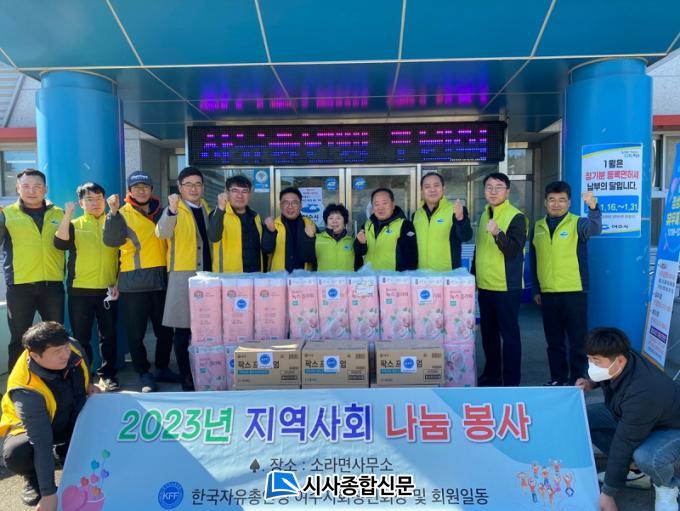 [½Ã»çÁ¾ÇսŹ® = ¿À½ÂÅà ±âÀÚ] Çѱ¹ÀÚÀ¯ÃÑ¿¬¸Í ¿©¼öû³âȸ(ȸÀå ±è¼ö¿ë)´Â Áö³ 31ÀÏ ¼Ò¶ó¸é»ç¹«¼Ò¸¦ ¹æ¹®ÇØ Áö¿ªÀÇ ¼Ò¿ÜµÈ ÀÌ¿ôÀ» À§ÇØ 100¸¸ ¿ø »ó´çÀÇ »ýȰ¿ëǰÀ» ±âŹÇß´Ù.