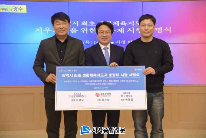 ±¤Áֽô 2ÀÏ ½Ãû ºñÁî´Ï½º·ë¿¡¼ ¡®»ýȰüÀ°ÁöµµÀÚ È£ºÀÁ¦ ½ÃÇà ¼¸í½Ä¡¯À» °³ÃÖÇß´Ù. À̳¯ Çà»ç´Â °±âÁ¤ ½ÃÀå°ú ÀÚÄ¡±¸ üÀ°È¸ ¹× »ýȰüÀ°È¸ ´ëÇ¥°¡ »ýȰüÀ°ÁöµµÀÚÀÇ Ã³¿ì °³¼±À» À§ÇØ ±¤¿ªÁöÀÚü ÃÖÃʷΠȣºÀÁ¦ µµÀÔ¿¡ ÇÕÀÇÇÏ¸é¼ ÀÌ·ïÁ³´Ù.