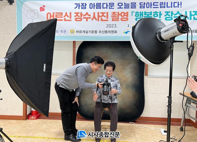 À̳¯ ÃÔ¿µÇÑ »çÁøÀº ¾×ÀÚ·Î Á¦ÀÛÇØ ¾î¸£½Åµé²² Á÷Á¢ Àü´ÞÇÒ ¿¹Á¤ÀÌ´Ù À̳¯ »çÁøÀ» ÃÔ¿µÇÑ ÇÑ ¾î¸£½ÅÀº ¡°»çÁøÀ» Âï´Â´Ù°í ÇÏ¸é ¿µÁ¤»çÁø Âï´Â °Í¸¸ °°¾Æ¼ ÇÇÇÒ ¶§°¡ ¸¹¾Ò´Âµ¥, ¸·»ó ÀÌ¿ôµéÇÏ°í ´Ù °°ÀÌ ¸Úµµ ³»°í, ¼·Î °Ç°µµ ±â¿øÇÏ¸é¼ »çÁøÀ» ÂïÀ¸´Ï±î ³Ê¹« Áñ°Ì°í, ÁÁÀº Ã߾ﵵ ³²±ä °Í °°¾Æ ±â»Ú´Ù¡±°í ¸»Çß´Ù.