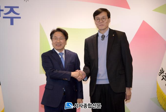 °±âÁ¤ ±¤ÁÖ±¤¿ª½ÃÀå°ú ÀÌâ¿ë Çѱ¹ÀºÇà ÃÑÀç´Â 6ÀÏ ½Ãû¿¡¼ °æÁ¦ Çö¾È¿¡ ´ëÇØ ³íÀÇÇß´Ù. ¸ÕÀú ±¤Áֽø¦ ¹æ¹®ÇÑ ÀÌ ÃÑÀç´Â ¡°ÃÖ±Ù ÁöÀÚü¿Í ÇÔ²² ÀÏÇϴ ü°è¸¦ ¸¸µé¾î°¡°í ÀÖ´Ù¸ç, ÁöÀÚü°¡ Çѱ¹ÀºÇàÀ» ¸¹ÀÌ È°¿ëÇØÁֱ⸦ ¹Ù¶õ´Ù¡±°í ¸»Çß´Ù.