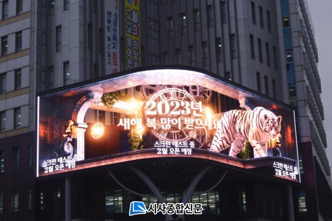 40~60ºÐ °£°Ý ź·Â ¿î¿µ= °¡·Î 42m, ¼¼·Î 9m Å©±âÀÇ ¹Ìµð¾î¿ùÀº 3¿ù¸»±îÁö ¸ÅÀÏ ¿ÀÀü 8½ÃºÎÅÍ ¿ÀÈÄ 10½Ã±îÁö 40ºÐ¾¿ °¡µ¿Çϸç, 4¿ùºÎÅÍ´Â °ø°ø¸ñÀûÀÇ ±¤°í ¼ÛÃâÀ» Æ÷ÇÔÇØ 1½Ã°£ °£°ÝÀ¸·Î ¹Ýº¹ Àç»ýµÈ´Ù.