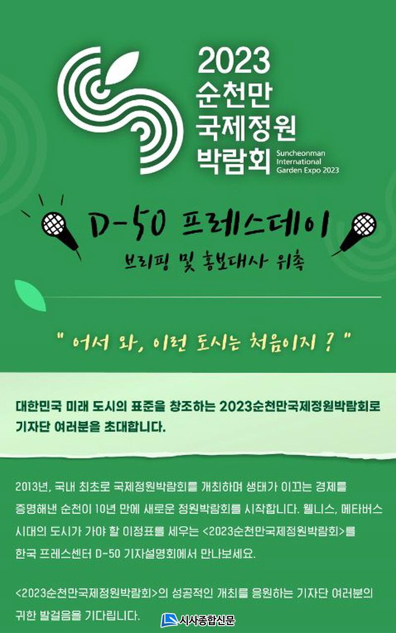 ³ë°ü±Ô ÀÌ»çÀå(¼øÃµ½ÃÀå)Àº ¼¿ï ÇÁ·¹½º¼¾ÅÍ¿¡¼ ±¹³»¿Ü ±âÀÚ´ÜÀ» »ó´ë·Î 2023Á¤¿ø¹Ú¶÷ȸÀÇ °³ÃÖ ÀÇ¹Ì¿Í ÇÙ½É ÄÜÅÙÃ÷ µîÀ» Á÷Á¢ ºê¸®ÇÎÇÒ °èȹÀÌ´Ù. ¾Æ¿ï·¯ ¹æ¼ÛÀÎ ¾Ëº£¸£Åä ¸óµð µî ±Û·Î¹ú È«º¸´ë»ç À§Ã˽ĵµ ÇÔ²² °¡Áú ¿¹Á¤ÀÌ´Ù.