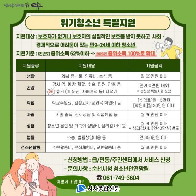 | ¼øÃµ½Ã, À§±âû¼Ò³â Ưº°Áö¿ø ´ë»óÀÚ ¸ðÁý ¸¸ 9~24¼¼ û¼Ò³â, »ýȰ¡¤»ó´ã¡¤Çо÷ ºñ¿ë µî Áö¿ø |