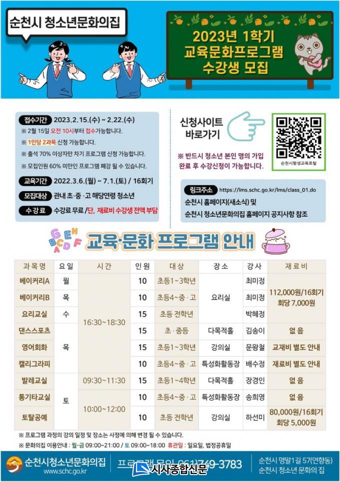 | ¼øÃµ½Ã û¼Ò³â¹®ÈÀÇÁý, 1Çб⠱³À°¹®È ÇÁ·Î±×·¥ ¼ö°»ý ¸ðÁý û¼Ò³âÀÇ °Ç°ÇÑ ¼ºÀå°ú ¹®È¡¤¿©°¡ÀÇ ±âȸ Á¦°øÀ» À§ÇÑ È°µ¿ Áö¿ø |