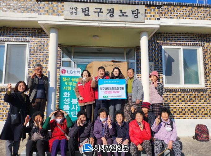 À̳¯ ºÀ»ç´ÜÀº ¹ú±¸°æ·Î´ç¿¡ 850L ¾ç¹®Çü ³ÃÀå°í¸¦ ȷðæ·Î´ç¿¡´Â 65ÀÎÄ¡ TV¸¦ Àü´ÞÇÏ¸ç ¾î¸£½ÅµéÀÇ ¾ÈºÎ¸¦ »ìÆñ´Ù. ¹°Ç°À» ¹ÞÀº ȷðæ·Î´ç ¹Ú ¸ð ¾î¸£½ÅÀº ¡°ÁÖº¯ ÀÌ¿ôµéÀ» ÀØÁö ¾Ê°í ºÀ»çȰµ¿À» ÆîÄ¡´Â LGÈÇРȼºÇ°°øÀå ºÀ»ç´Ü¿¡ °¨»çµå¸°´Ù¡±°í ¸»Çß´Ù.