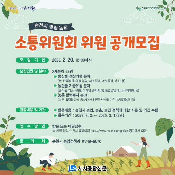 Èñ¸Á ³óÁ¤ ¼ÒÅëÀ§¿øÈ¸ À§¿ø ¸ðÁý¿¡ °üÇÑ ÀÚ¼¼ÇÑ »çÇ×Àº ¼øÃµ½Ã ³ó¾÷Á¤Ã¥°ú(061-749-8670)·Î ¹®ÀÇÇÏ¸é µÈ´Ù.