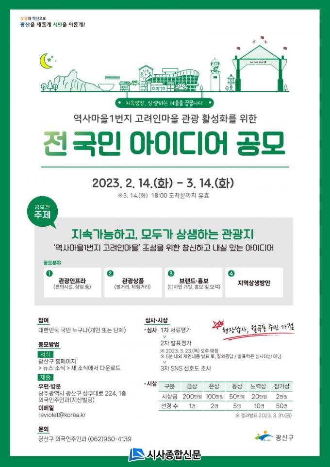 °ø¸ð ±â°£Àº 3¿ù14ÀϱîÁö¸ç, Áö¿ªÀ̳ª ¿¬·É Á¦ÇÑ ¾øÀÌ ´©±¸³ª, ¿ìÆí‧¹æ¹®(±¤ÁÖ ±¤»ê±¸ ¿Ü±¹ÀÎÁֹΰú) ¶Ç´Â À̸ÞÀÏ(reviolet@korea.kr)·Î Âü¿©ÇÒ ¼ö ÀÖ´Ù. Á¦Ãâ¾ç½ÄÀº ±¤»ê±¸ ´©¸®Áý(www.gwangsan.go.kr) ¡®»õ ¼Ò½Ä¡¯¿¡¼ ³»·Á ¹ÞÀ¸¸é µÈ´Ù.
