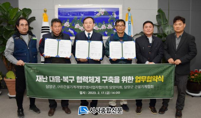 ´ã¾ç±º(±º¼ö À̺´³ë)Àº 17ÀÏ °¢Á¾ À糡¤ÀçÇØ·ÎºÎÅÍ ½Å¼ÓÇϰí È¿À²ÀûÀÎ ´ëÀÀ, ±ä±Þº¹±¸¸¦ À§ÇÑ ÁßÀåºñ µ¿¿øÀ» À§ÇØ (»ç)°Ç¼³±â°è°³º°¿¬¸í»ç¾÷ÀÚÇùÀÇȸ ´ã¾çÁöȸ, ´ã¾ç±º °Ç¼³±â°èÇùȸ¿Í Àç³ ´ëÀÀ¡¤º¹±¸ Çù·Âü°è ±¸ÃàÀ» À§ÇÑ ¾÷¹«Çù¾àÀ» ü°áÇß´Ù°í ¹àÇû´Ù.