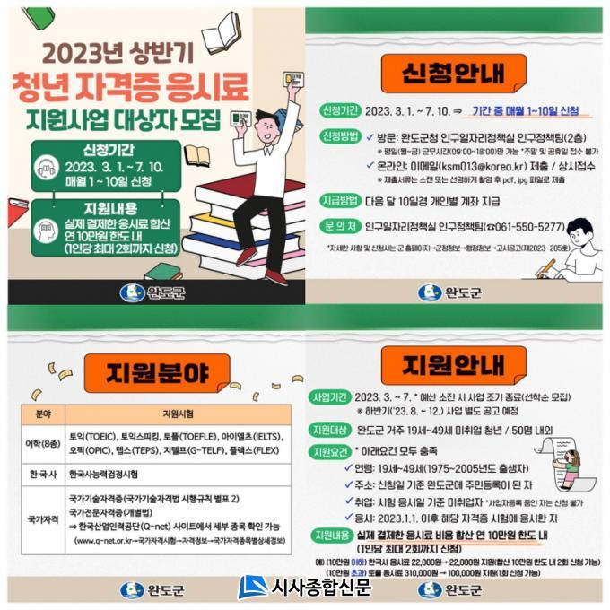 ÀÌ »ç¾÷Àº ¿ÃÇØ ±º¿¡¼´Â óÀ½ ½ÃÇàÇÏ´Â »ç¾÷À¸·Î ÀÚ°ÝÁõ ÃëµæÀ» À§ÇØ ³ë·ÂÇϴ û³âµéÀÇ °æÁ¦Àû ºÎ´ãÀ» ¿ÏÈÇϰíÀÚ ÃßÁøÇÏ°Ô µÆ´Ù.Áö¿ø ´ë»óÀº ½ÅûÀÏ ±âÁØ ¿Ïµµ±º¿¡ ÁÖ¼Ò¸¦ µÐ 19¼¼~49¼¼ ¹ÌÃë¾÷ û³âÀ̸ç, 2023³â 1¿ù 1ÀÏ ÀÌÈÄ ¾îÇÐ(8Á¾), Çѱ¹»ç, ±¹°¡ ÀÚ°ÝÁõ(±¹°¡ ±â¼ú ÀÚ°ÝÁõ, ±¹°¡ Àü¹® ÀÚ°ÝÁõ)À» ½ÇÁ¦·Î ÀÀ½ÃÇÑ Ã»³âÀÌ¸é ½ÅûÇÒ ¼ö ÀÖ´Ù.
