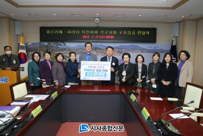 [½Ã»çÁ¾ÇսŹ® = ¿À½ÂÅà ±âÀÚ] ½Å¾È±º(±º¼ö ¹Ú¿ì·®)Àº 22ÀÏ ±º û»ç¿¡¼ Æ¢¸£Å°¿¹¿Í ½Ã¸®¾ÆÀÇ ÁöÁø ÇÇÇØ º¹±¸ Áö¿øÀ» À§ÇÑ ¼º±Ý 2,300¸¸¿øÀ» ´ëÇÑÀû½ÊÀڻ翡 Àü´ÞÇß´Ù.