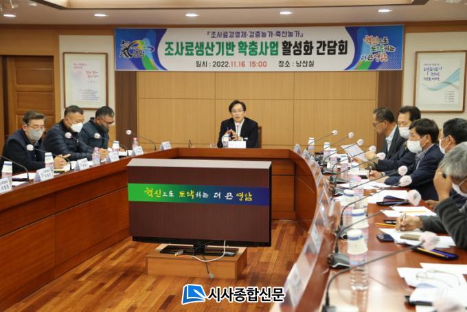 ¿µ¾Ï±ºÀº Áö³ ÇØ 11¿ù 16ÀÏ Á¶»ç·á»ý»êÀÇ ³»½ÇÀ» ´ÙÁö°í °ü·Ã »ç¾÷ÀÇ È°¼ºÈ¸¦ µµ¸ðÇϰíÀÚ Á¶»ç·á»ý»ê±â¹ÝÈ®Ãæ»ç¾÷ Ȱ¼ºÈ °£´ãȸ¸¦ °³ÃÖÇÏ¿´À¸¸ç, ±×¿¡ ´ëÇÑ ÈļÓÁ¶Ä¡·Î °æÁ¾¡¤Ãà»ê¡¤Á¶»ç·á³ó°¡ ¹× °ü·Ã ÇàÁ¤ºÎ¼ °ü°èÀÚ Çù¾÷ T/F¸¦ ±¸¼ºÇÏ¿© ¿î¿µ ÇØ¿À°í ÀÖ´Ù.