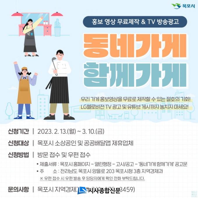 ¸ñÆ÷½Ã °ü°èÀÚ´Â ¡°È«º¸¿µ»óÀ» ¹«·á·Î Á¦ÀÛ, TV¿¡ ±¤°í±îÁö ÇØÁÖ´Â À̹ø ±âȸ¸¦ ³õÄ¡Áö ¸»°í ²À ½ÅÃ»ÇØ¼ °¡°Ô ¿î¿µ¿¡ µµ¿òÀÌ µÇ¾úÀ¸¸é ÇÑ´Ù.¡±°í ¸»Çß´Ù. ÀÚ¼¼ÇÑ ³»¿ëÀº ½Ã ȨÆäÀÌÁö °í½Ã¡¤°ø°í °Ô½ÃÆÇ¿¡¼ °ø°í¹®(¡®µ¿³×°¡°Ô ÇÔ²²°¡°Ô¡¯)À» Âü°íÇϰųª ¸ñÆ÷½Ãû Áö¿ª°æÁ¦°ú(270-8459)À¸·Î ¹®ÀÇÇÏ¸é µÈ´Ù.