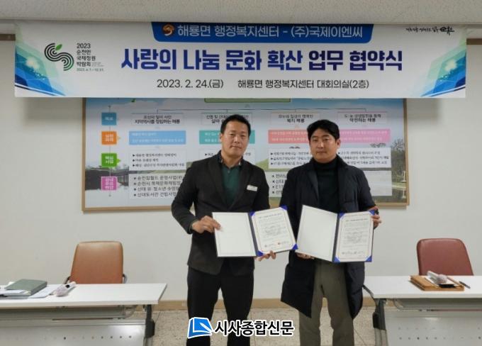 ¼øÃµ½Ã ¼¸é¿¡ ¼ÒÀçÇÑ Àü±â¡¤¼Ò¹æ½Ã¼³°ø»ç Àü¹® ±â¾÷ÀÎ ¢ß±¹Á¦ÀÌ¿£¾¾(´ëÇ¥ÀÌ»ç ±è±Ôȯ)´Â Áö³ 7ÀÏ ÇØ·æ¸é ÇàÁ¤º¹Áö¼¾ÅÍ¿¡ 420¸¸¿ø »ó´çÀÇ ¼øÃµ¸¸±¹Á¦Á¤¿ø¹Ú¶÷ȸ ÀÔÀå±Ç°ú ¹é¹Ì 400kg¸¦ ÈÄ¿øÇÏ¿´À¸¸ç, ÀÌ¿Í °°Àº ³ª´®¹®È¸¦ Áö¿ª»çȸ ³»¿¡ È®»ê ¹× ¼±µµÇϰíÀÚ À̹ø ¾÷¹«Çù¾àÀ» ü°áÇß´Ù°í ¹àÇû´Ù.