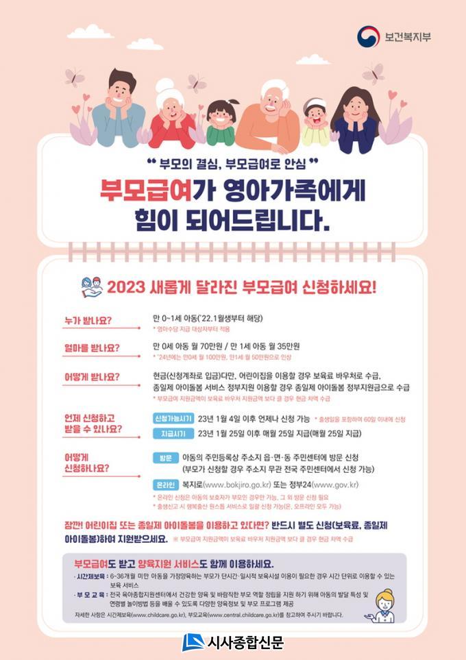±ººñ 6¾ï 9õ¿©¸¸¿øÀ» Æ÷ÇÔÇÑ ÃÑ »ç¾÷ºñ 39¾ï 5õ¿©¸¸¿øÀÌ ¼Ò¿äµÇ´Â ºÎ¸ð±Þ¿©´Â 2022³â 1¿ù 1ÀÏ ÀÌÈÄ Ãâ»ýÇÑ ¸¸ 2¼¼ ¹Ì¸¸ÀÇ ¾Æµ¿À» ´ë»óÀ¸·Î ¸¸ 0¼¼(0~11°³¿ù)¿Í ¸¸ 1¼¼(12~23°³¿ù)´Â °¢°¢ ¿ù 70¸¸¿ø, 35¸¸¿øÀ» ¹Þ°Ô µÈ´Ù.
