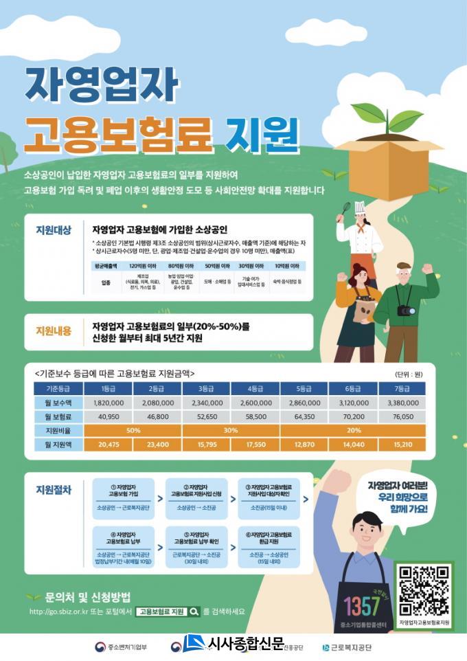 ÀÚ¿µ¾÷ÀÚ °í¿ëº¸Çè·á Áö¿ø»ç¾÷ÀÇ ÀÚ¼¼ÇÑ Áö¿ø³»¿ë ¹× ½Åû¿ä°Ç µîÀº ¼Ò»ó°øÀνÃÀåÁøÈï°ø´Ü ´©¸®Áý(http://www.semas.or.kr) ¹× °í¿ëº¸Çè·á Áö¿ø ´©¸®Áý(http://go.sbiz.or.kr)À» ÅëÇØ È®ÀÎÇÒ ¼ö ÀÖÀ¸¸ç, º¸´Ù ÀÚ¼¼ÇÑ ¹®ÀÇ»çÇ×Àº Áß¼Ò±â¾÷ Äݼ¾ÅÍ(1357)¸¦ ÅëÇØ¼µµ ¾È³»¹ÞÀ» ¼ö ÀÖ´Ù.