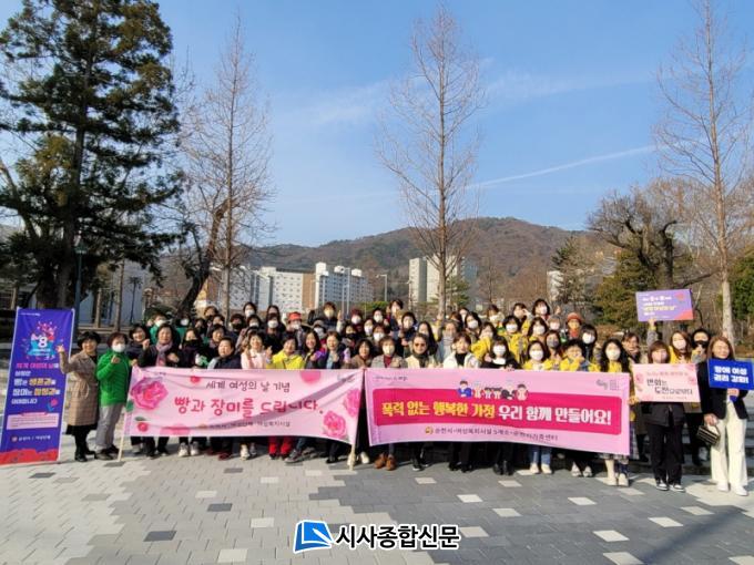 ¼øÃµÀÇ 26°³ ¿©¼º´Üü, 5°³ ¿©¼ºº¹Áö½Ã¼³, °¡Á·¼¾ÅͰ¡ Âü¿©ÇØ 1,000¿© ¸íÀÇ ½Ã¹Îµé¿¡°Ô »§(»ýÁ¸±Ç)°ú Àå¹Ì(ÂüÁ¤±Ç)¸¦ ³ª´²ÁÖ°í ÀÏ»ó ¼Ó ¼º °íÁ¤°ü³ä°ú ¾ç¼ºÆòµî, Æø·Â¿¹¹æ µî ¿©¼ºÀÇ ³¯ Àǹ̸¦ ¾Ë¸®´Â ½Ã°£À» °¡Á³´Ù.