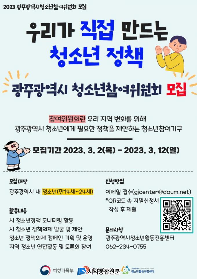 Áö¿ª ³» 14¼¼~24¼¼ÀÇ Ã»¼Ò³âÀ̶ó¸é ´©±¸³ª Áö¿ø °¡´ÉÇϰí 1Â÷ ¼·ù½É»ç ¹× 2Â÷ ¸éÁ¢½É»ç¸¦ °ÅÃÄ Âü¿©À§¿øÈ¸¸¦ 20¸í ³»¿Ü·Î À§¿ø ¼±¹ßÀ» ÁøÇàÇÒ °èȹÀÌ´Ù. Âü¿©À§¿øÈ¸ À§¿øÀº ±¤ÁÖ±¤¿ª½ÃÀå ¸íÀÇÀÇ À§ÃËÀå°ú À§¿øÁõÀ» ¹ß±Þ¹Þ¾Æ ±¤ÁÖ±¤¿ª½Ã û¼Ò³âÁ¤Ã¥ »ç¾÷¿¡ ´ëÇØ ÀÇ°ß Á¦½Ã¿Í ¸ð´ÏÅ͸µ, Áö¿ª»çȸ Ȱµ¿, Âü¿©±â±¸ ±³·ùȰµ¿ µîÀ» ¼öÇàÇÏ°Ô µÈ´Ù.