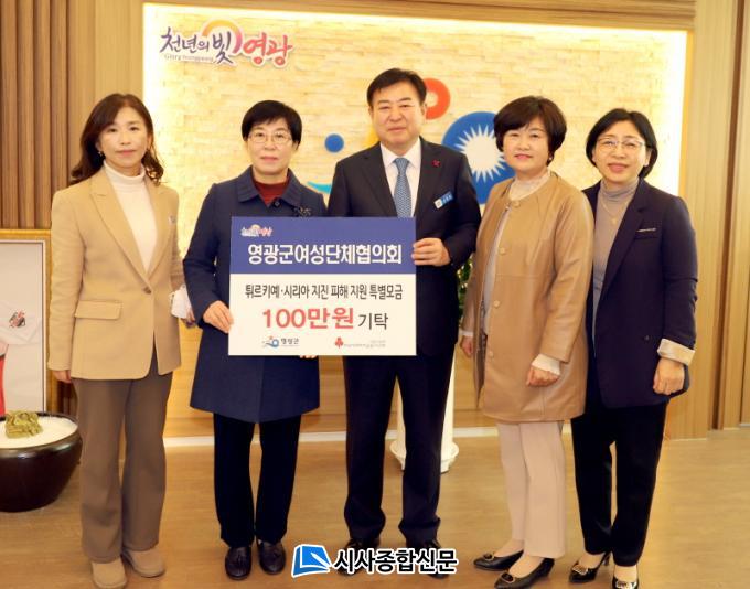[½Ã»çÁ¾ÇսŹ® = ¿À½ÂÅà ±âÀÚ] ¿µ±¤±º¿©¼º´ÜüÇùÀÇȸ(ȸÀå ³ªÀºÁÖ)´Â Áö³ 7ÀÏ ¿µ±¤±º¿¡ Æ¢¸£Å°¿¹・½Ã¸®¾Æ Áö¿ª ´ëÁöÁø ÇÇÇØ º¹±¸¿Í ÀÌÀç¹Î Áö¿øÀ» À§ÇØ ¼º±Ý 100¸¸ ¿øÀ» ±âŹÇÏ¿´´Ù.