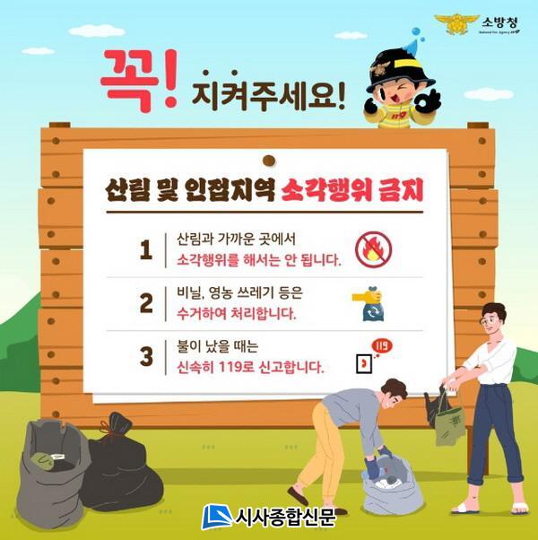 º½Ã¶Àº °ÇÁ¶ÇÑ ³¯¾¾¿Í ÇÔ²² ¹Ù¶÷ÀÌ °ÇÏ°Ô ºÒ¾î ÀÛÀº ºÒ¾¾µµ Å«ºÒ·Î ¹øÁú ¼ö ÀÖ´Â À§ÇèÇÑ ½Ã±â´Ù. »êºÒÀ» ¹ß°ßÇϸé Áï½Ã 119³ª ÇØ´ç ÁöÀÚü¿¡ ½Å°íÇØ¾ß Çϸç, »êºÒÀ» ¿¹¹æÇϱâ À§Çؼ´Â ¡ã³í¡¤¹çµÎ·· ¶Ç´Â ¾²·¹±â ¼Ò°¢ ±ÝÁö ¡ãÈí¿¬ ¹×´ã¹è²ÇÃÊ ¹«´ÜÅõ±â ±ÝÁö ¡ãÁöÁ¤µÈ °÷ÀÌ ¾Æ´Ñ °÷¿¡¼ÀÇ Ãë»ç ¹× ¾ß¿µ ±ÝÁö, ¡ã»êÇà ½Ã ÀÎȹ°Áú È޴븦 ±ÝÁö µî ¾ÈÀü¼öÄ¢À» ÁؼöÇØ¾ß ÇÑ´Ù°í ¼³¸íÇß´Ù.