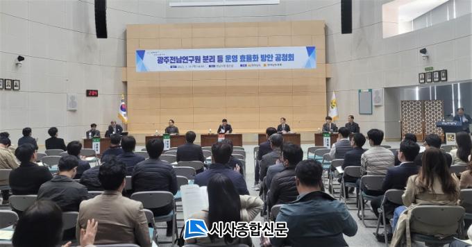 °¢°è°¢Ãþ ÀÇ°ß ¼ö·ÅÀ» ÅëÇØ ±¤ÁÖÀü³²¿¬±¸¿ø ºÐ¸® ¿©ºÎ¸¦ °áÁ¤Çϱâ À§ÇØ ¸¶·ÃµÈ À̳¯ °øÃ»È¸¿¡´Â µµ¹Î, µµÀÇ¿ø, °ø¹«¿ø, °ü°è Àü¹®°¡ µî 150¿© ¸íÀÌ Âü¼®Çß´Ù. °øÃ»È¸´Â ±âÁ¶¹ßÁ¦, ÁöÁ¤Åä·Ð, ÀÚÀ¯Åä·Ð ¼ø¼·Î ÁøÇàµÆÀ¸¸ç ÀåÇå¹ü Àü³²µµ ±âȹÁ¶Á¤½ÇÀåÀÌ ±âÁ¶¹ßÁ¦ÀÚ·Î ³ª¼¹´Ù.