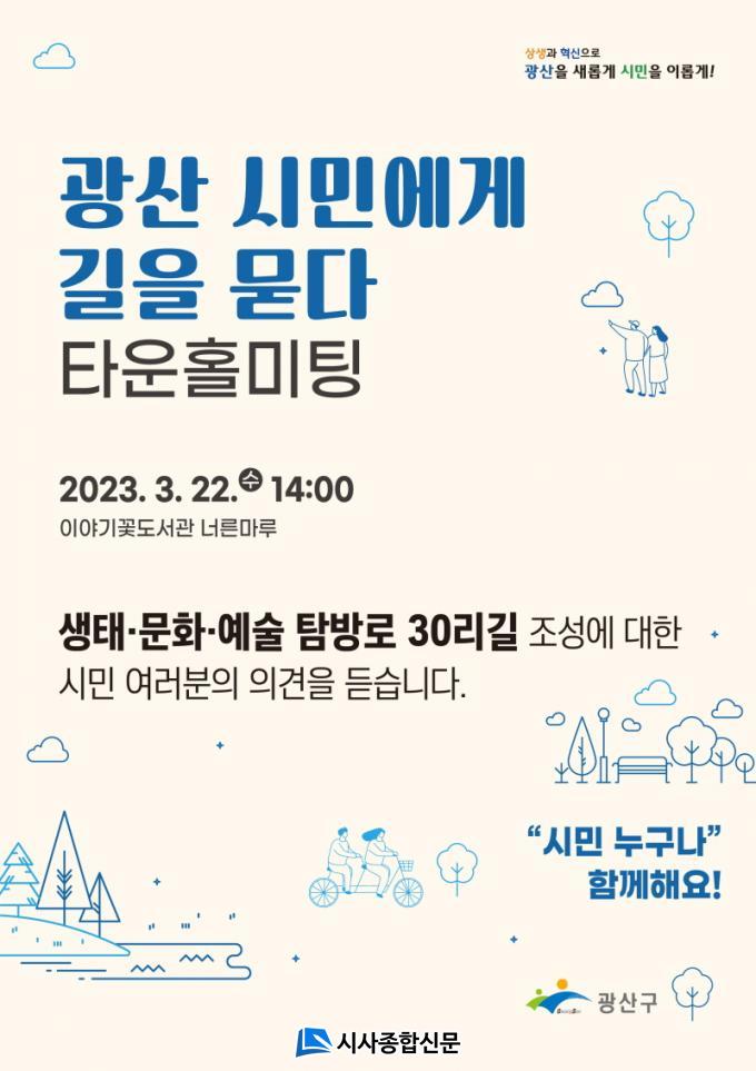 ±¤»ê±¸´Â 22ÀÏ ¿ÀÈÄ 2½Ã À̾߱â²Éµµ¼°ü 1Ãþ ³Ê¸¥¸¶·ç¿¡¼ ¡®±¤»ê½Ã¹Î¿¡°Ô ±æÀ» ¹¯´Ù¡¯ Ÿ¿îȦ¹ÌÆÃÀ» °³ÃÖÇÑ´Ù°í ¹àÇû´Ù. ±×µ¿¾È ã¾Æ°¡´Â °æÃ» ±¸Ã»Àå½ÇÀ» Áß½ÉÀ¸·Î ÁÖ¹ÎÀÇ ºÒÆí »çÇ×À» °æÃ»Çؿ °Í¿¡¼ ÇÑ¹ß ´õ ³ª¾Æ°¡ ±¤»ê±¸ÀÇ ´ëÇ¥Á¤Ã¥À» Áß½ÉÀ¸·Î ½Ã¹Î°ú ¼ÒÅëÇÏ¸ç ¹ßÀüÀû ¹æÇâÀ» ¸ð»öÇϰíÀÚ ¸¶·ÃÇÑ °ÍÀÌ´Ù.